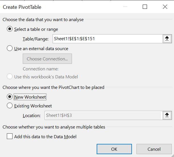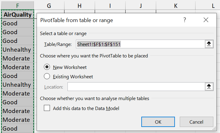 Step 2: Select the relevant data in Excel. Here, we want to analyse the Breed variable, so we only select the Breed column.