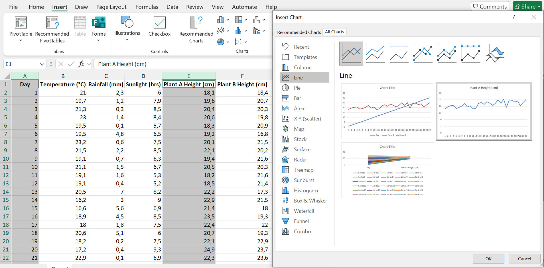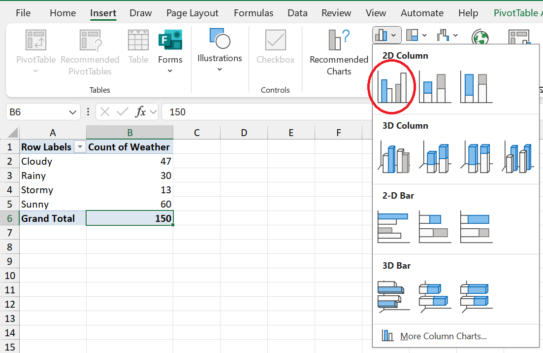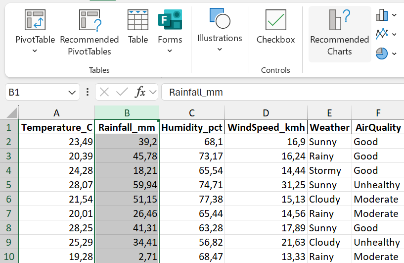 Step 2: Navigate to Insert \(\rightarrow\) Recommended Charts