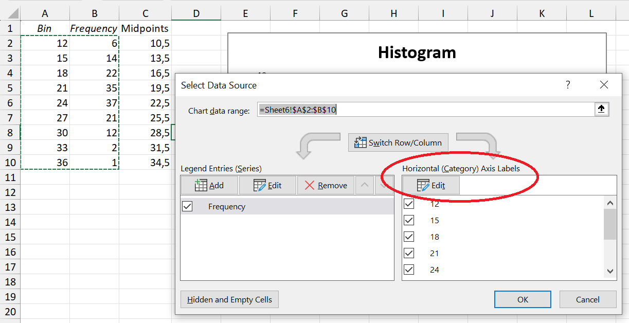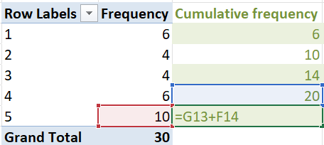 To obtain a relative frequency distribution table in Excel, follow Steps 1-5 to obtain a frequency distribution table. Then do the following: