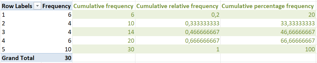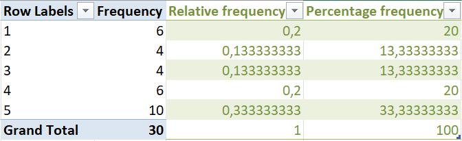 Alternatively, you can manually create relative and percentage frequency tables from your frequency table as follows: