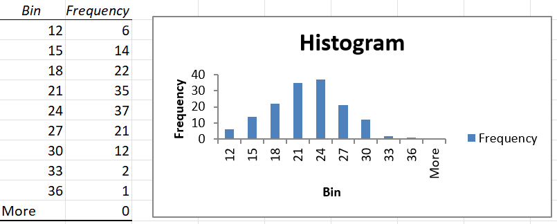 \[=\textrm{COVARIANCE.S(A1:A151,B1:B151}),\] and obtain a value of approximately -3.44.