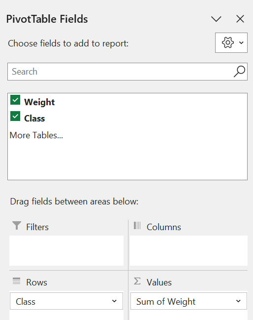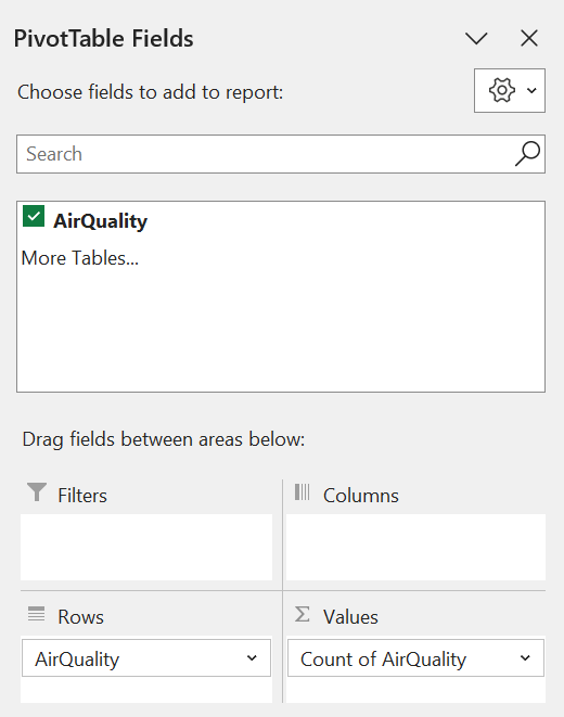 The PivotTable Fields panel will then pop up on the right of the screen.