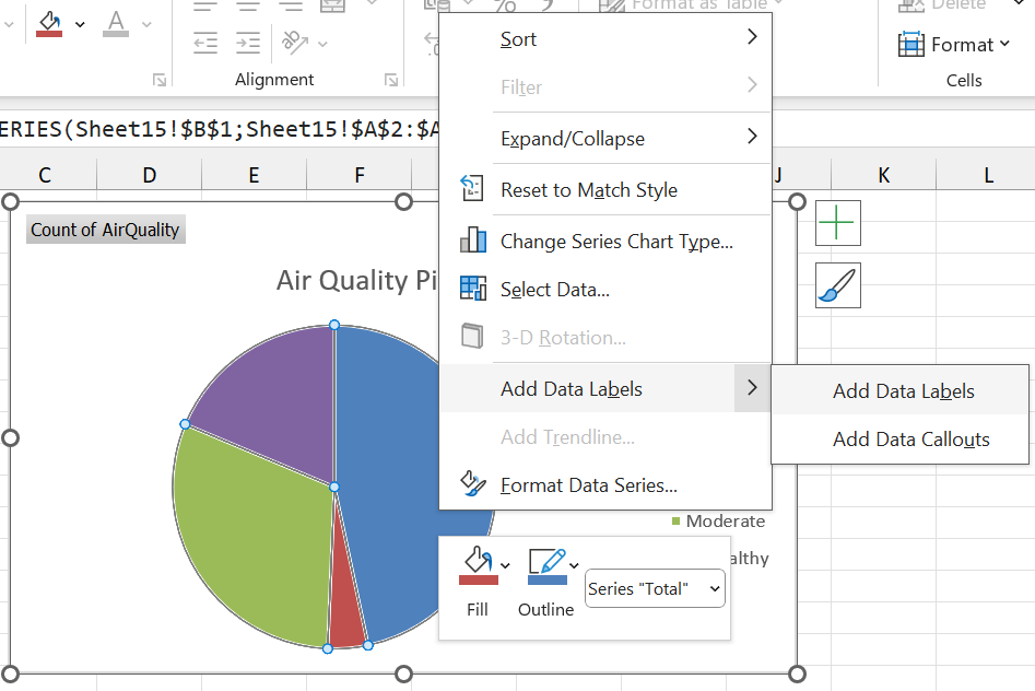 Once the chart is displaying, click on the plus-icon next to the chart to insert a legend.
