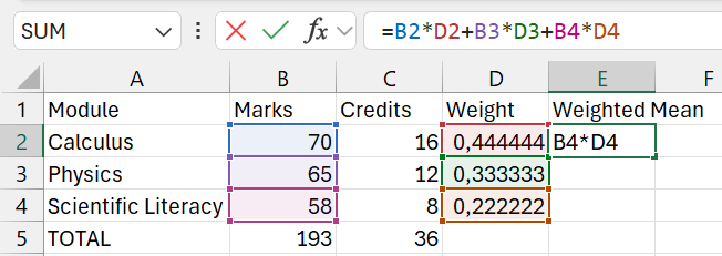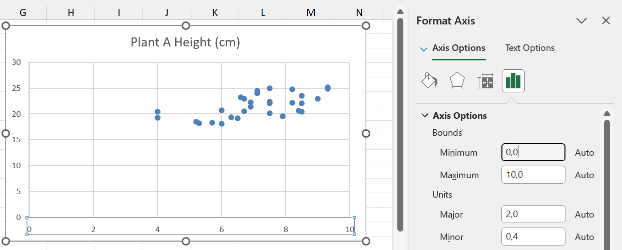 \[\textrm{Coefficient of variation =} \left(\frac{\textrm{Standard deviation}}{\textrm{Mean}}\times100\right)\%.\] This can be calculated manually in Excel. Using this formula, we find that the coefficient of variation for temperature is 23%, whereas the coefficient of variation for rainfall is 76%. This tells us that the standard deviation of the temperature is only 23% of its mean, whereas the standard deviation of the rainfall is 76% of its mean. This confirms our earlier intuition.